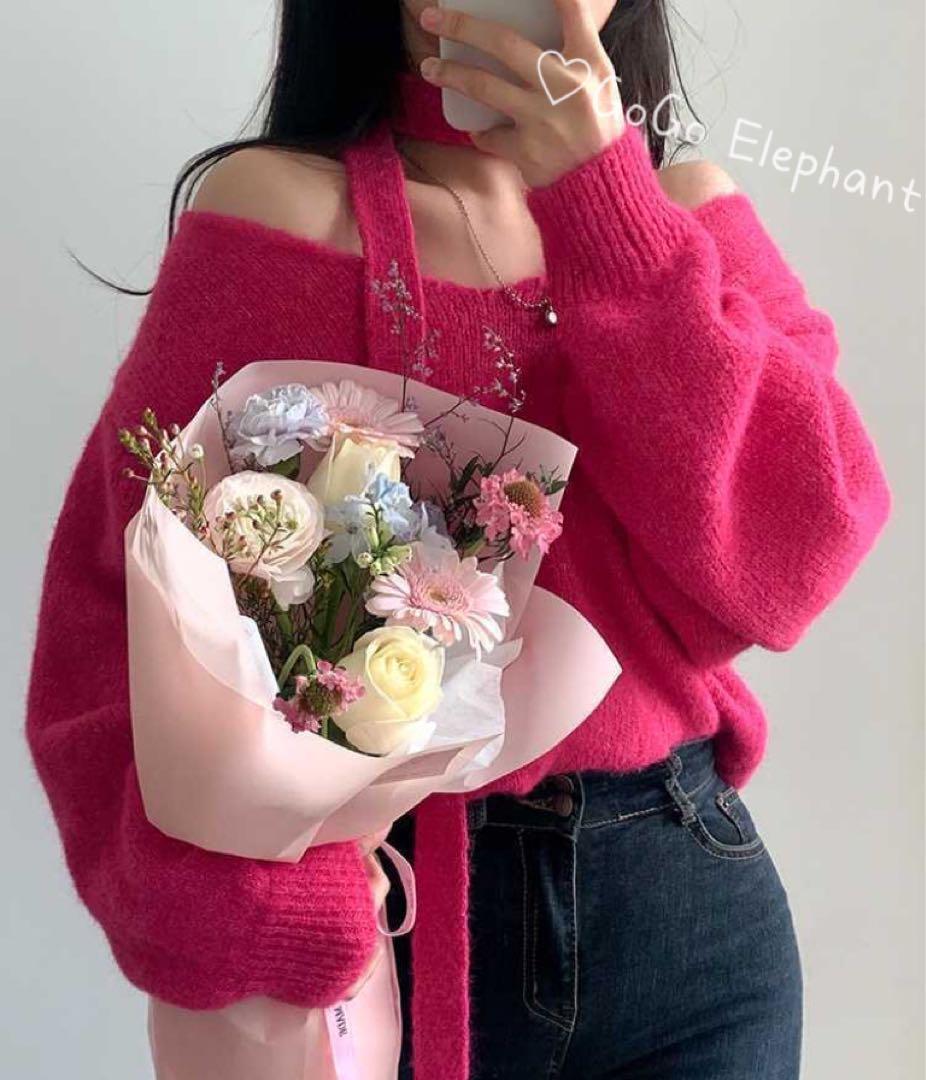 韓国♡ちょいセクシー♪ 肩見せチョーカー付き ニットトップス セーター おしゃれ