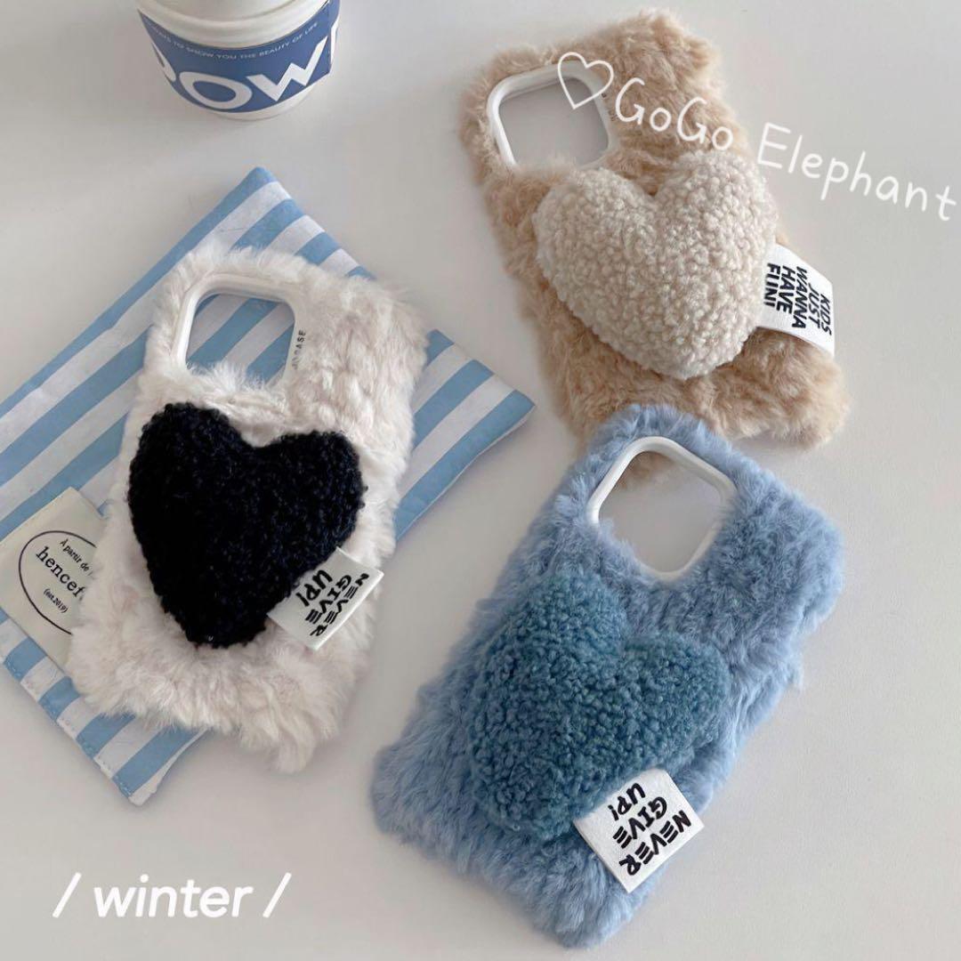 韓国♡ふわふわ 可愛い ハートグリップ♪ もこもこ スマホ iPhoneケース