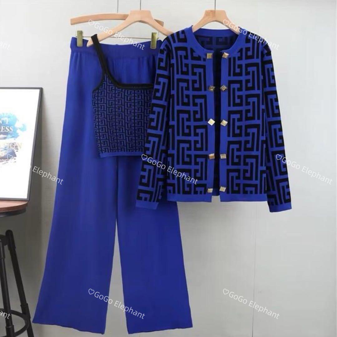 ☆★ 新品入荷 韓国♡モノグラム 高級感 カーディガン ヨーロピアン セットアップ おしゃれ モダン パンツ ★