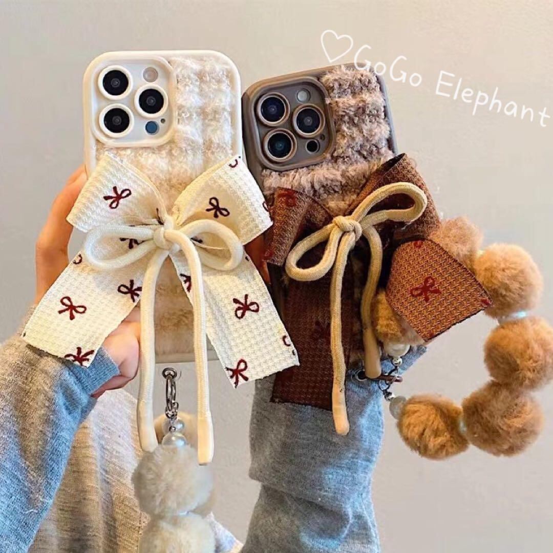 韓国♡もこもこ 可愛い ダブルリボン ♪ ふわふわリング付き iPhoneケース