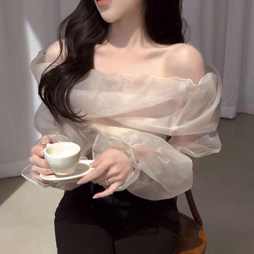 ☆★ 新品入荷 韓国♡華やか オフショル シースルー ブラウス トップス エレガント 綺麗め★☆