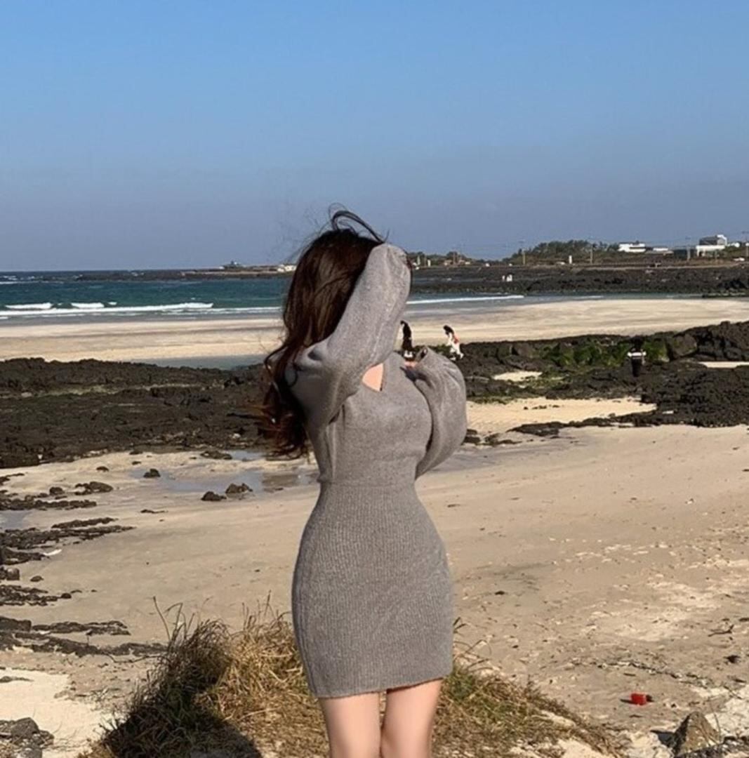 韓国♡くびれ美人♪ セクシー Vネック ニット ワンピース タイト きれいめ