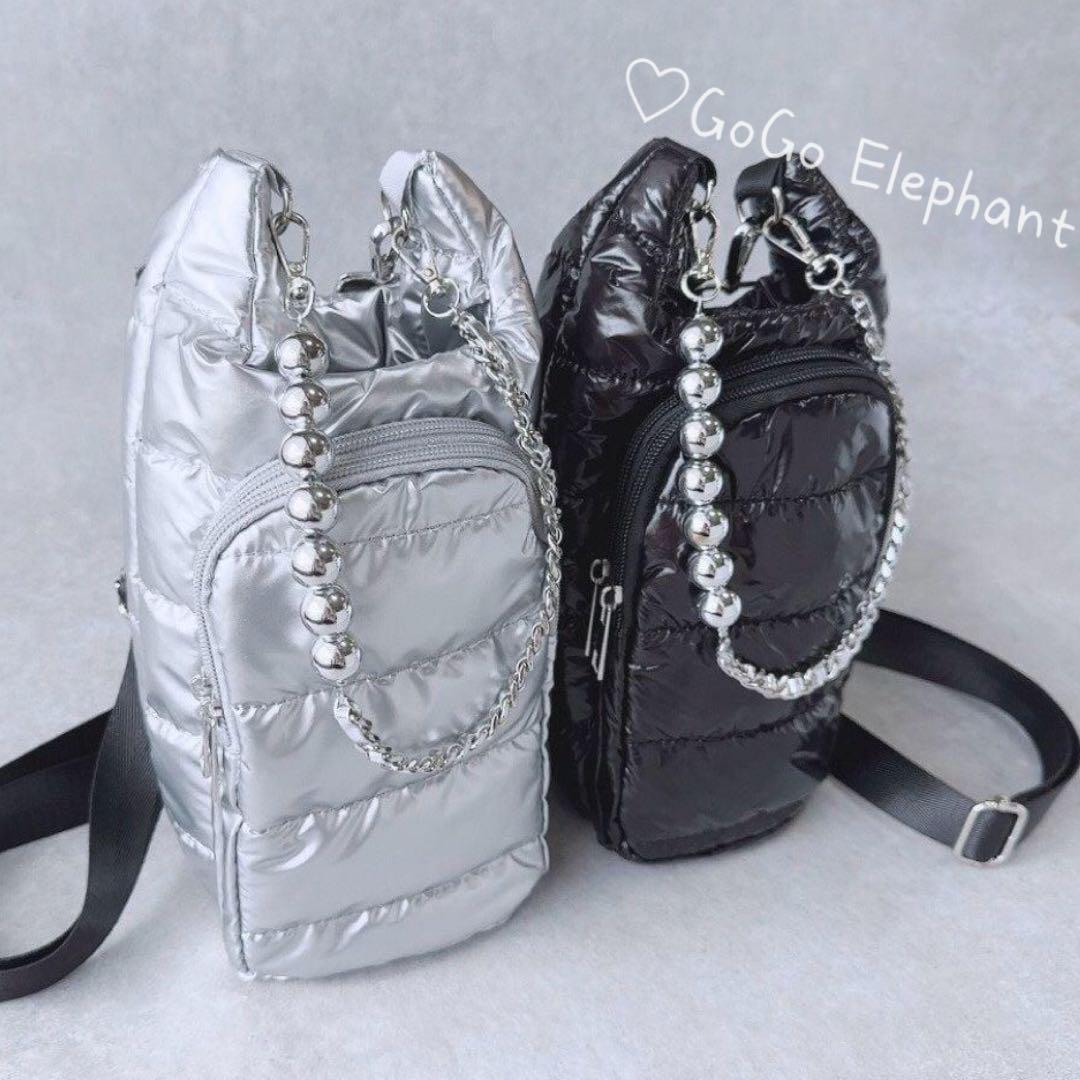 韓国♡おしゃれ 金属風 ボトル デザイン ショルダー ダウン ショルダー バッグ
