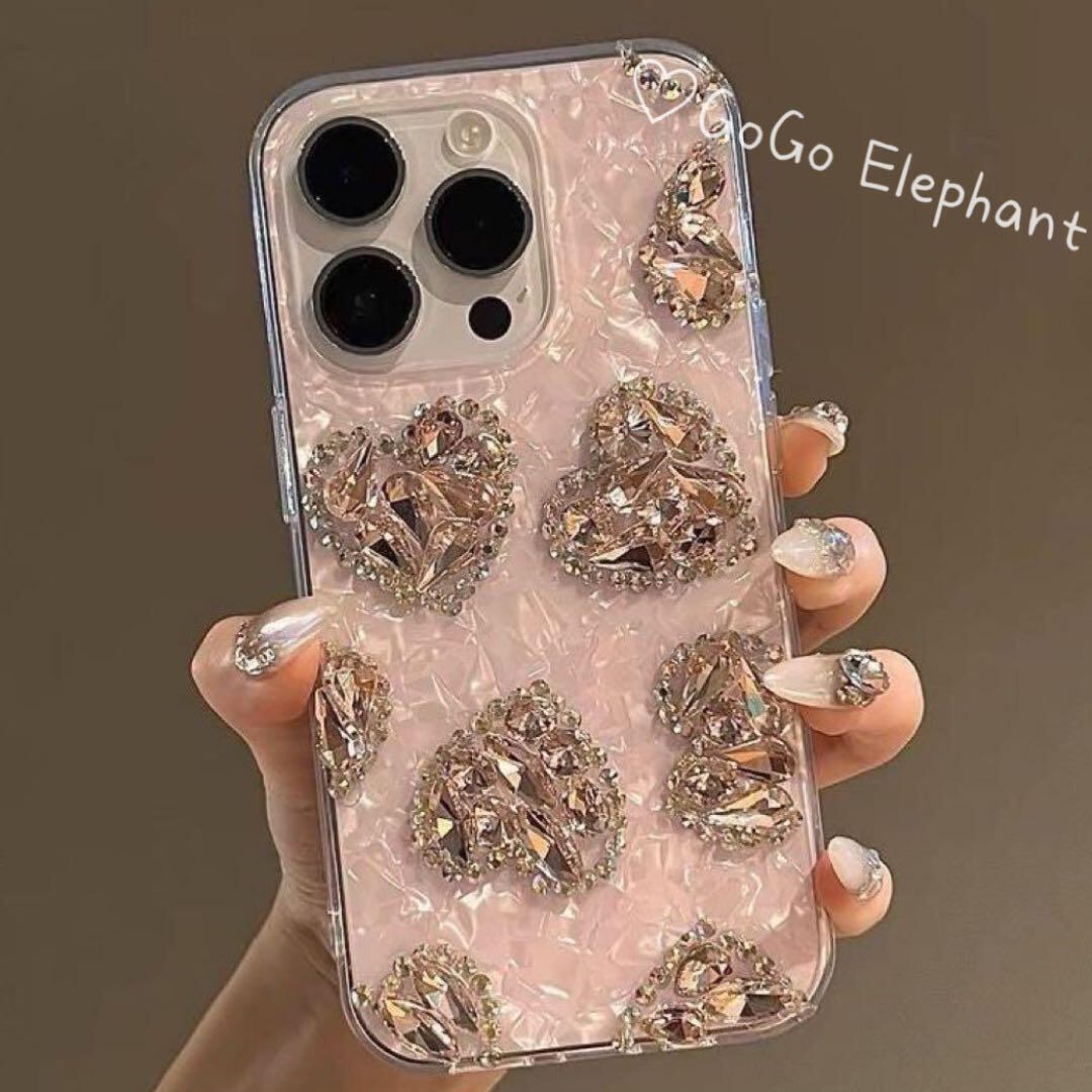 ☆★ 新品入荷 韓国デザイン♡宝石風♡映え確定 キラキラ ハート シェル iphone16ケース ♡