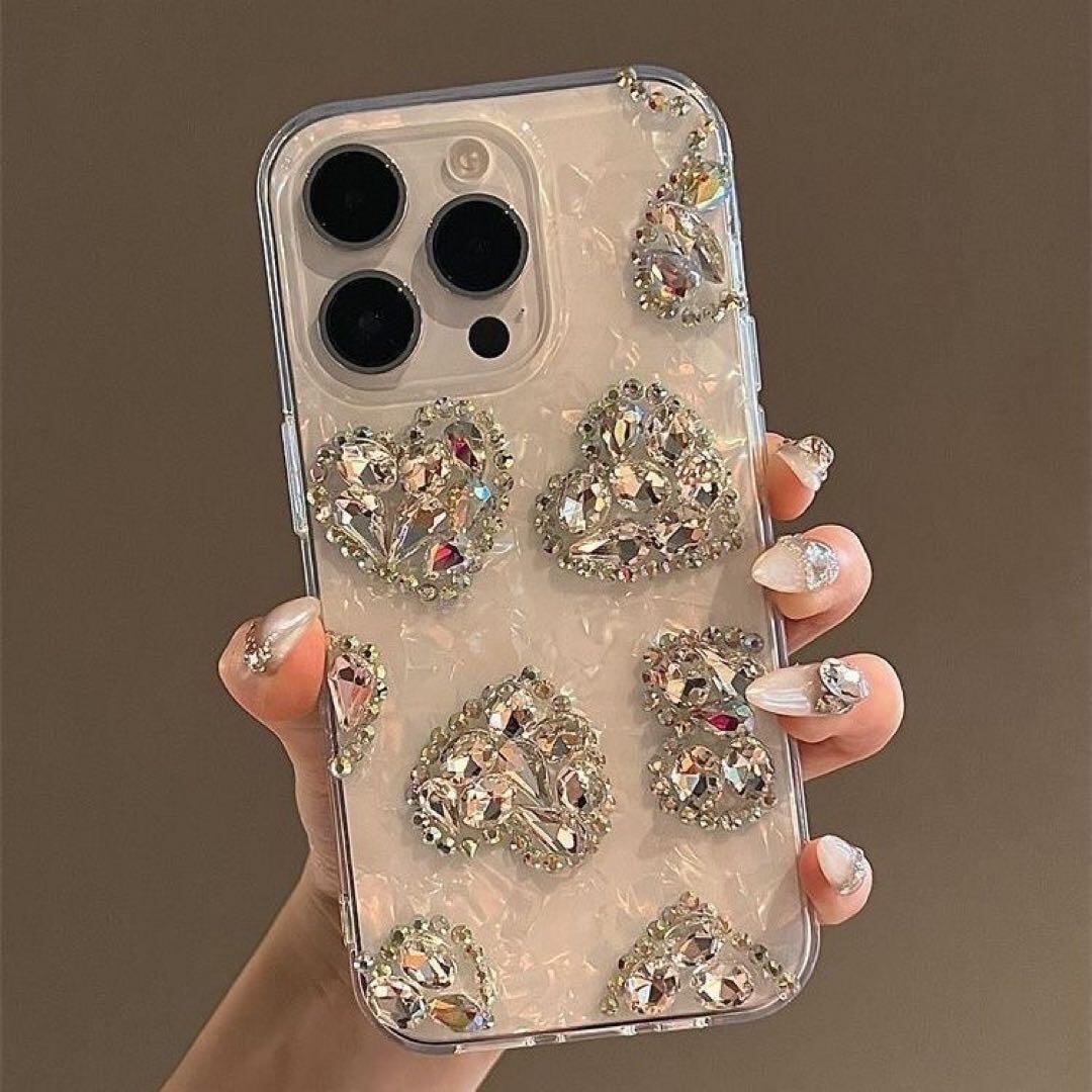 韓国デザイン♡宝石風♡映え確定 キラキラ ハート シェル iphone16ケース