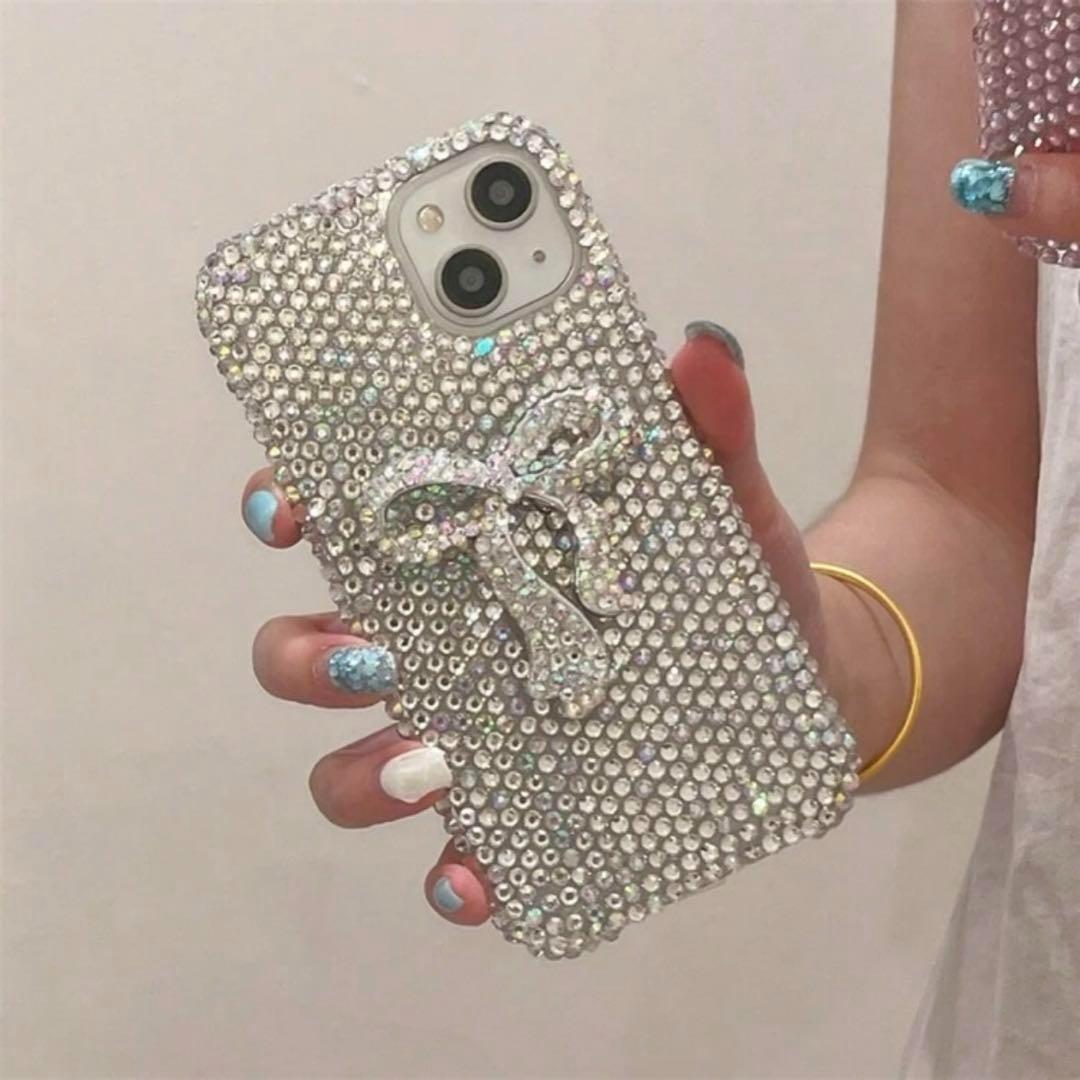 韓国♡映え♪ キラキラ リボン デコ電 ラインストーン iphone16ケース