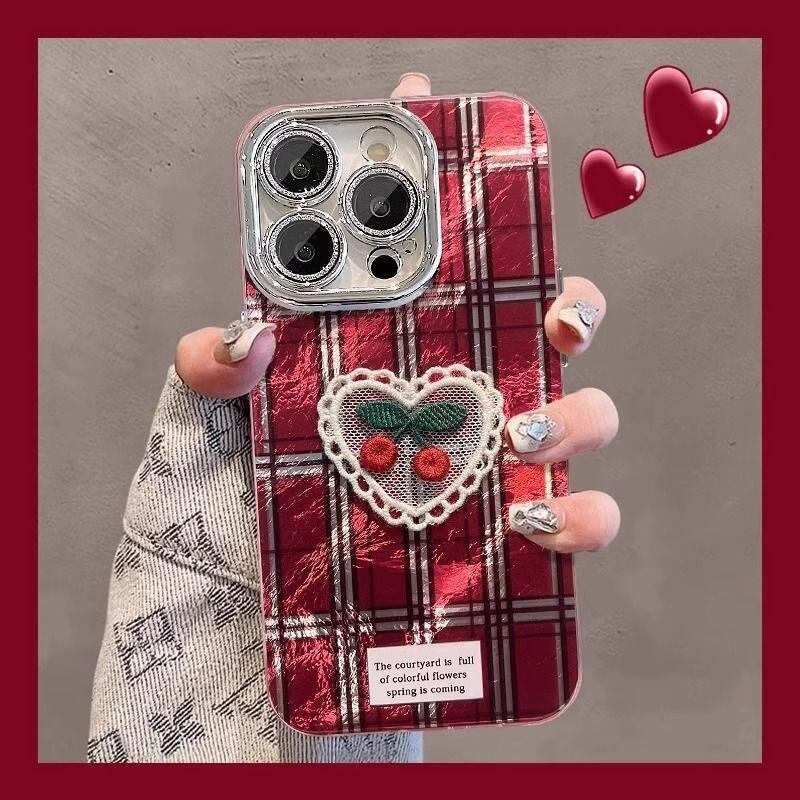 韓国♡映え♪ キラキラ 可愛い サクランボ 刺繍 iphone16proケース