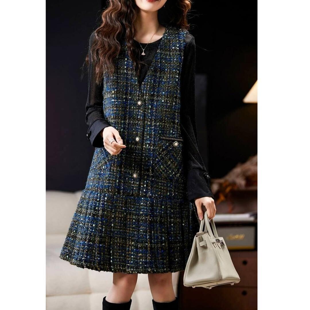 ☆★ 新品入荷 韓国♡高級感 ツイード 裾プリーツ フレア ジャンパー スカート ワンピース レディース 服 シンプル 秋冬 新品 着回し 通勤 ★☆