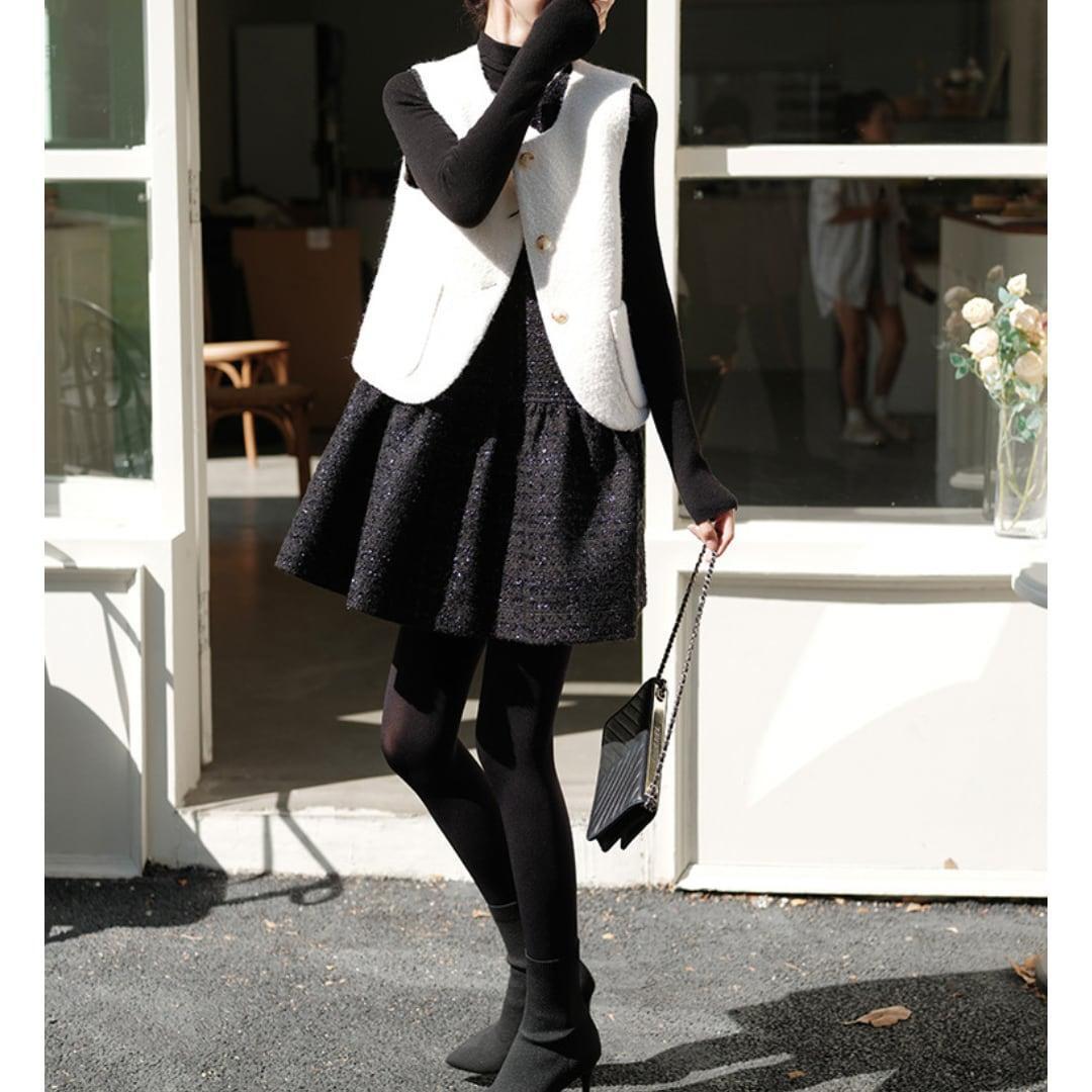 ☆★ 新品入荷 韓国♡高級感 ツイード フレア ジャンパー スカート ワンピース 大人可愛い 着痩せ