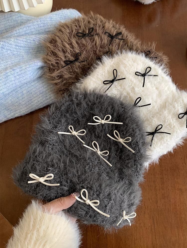 ☆★ 新品入荷 韓国♡ふわふわファーリボンニット帽子y2k 流行り 秋冬 防寒 おしゃれ 可愛い 暖かい 秋冬 通勤 学生 大人可愛い♡
