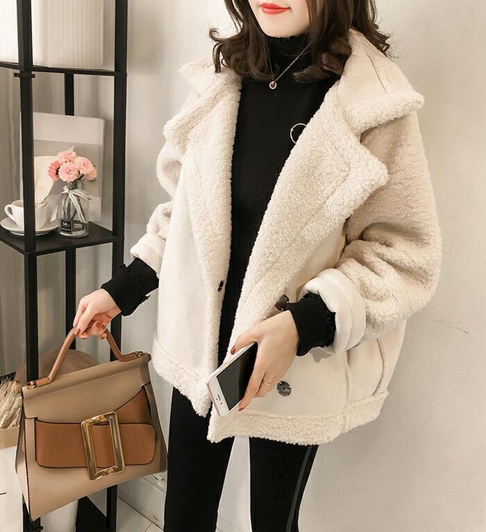 韓国♡大人可愛い ジャケット ボア ムートン風 ライダース アウター おしゃれ