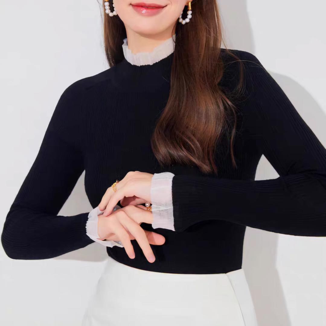 韓国♡美人度アップ シアー フリル デザイン ウール ニット シンプル 着回し