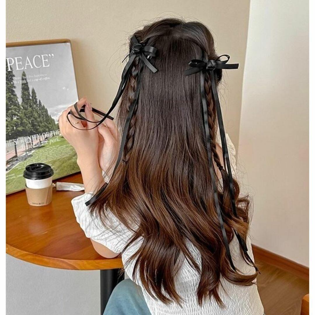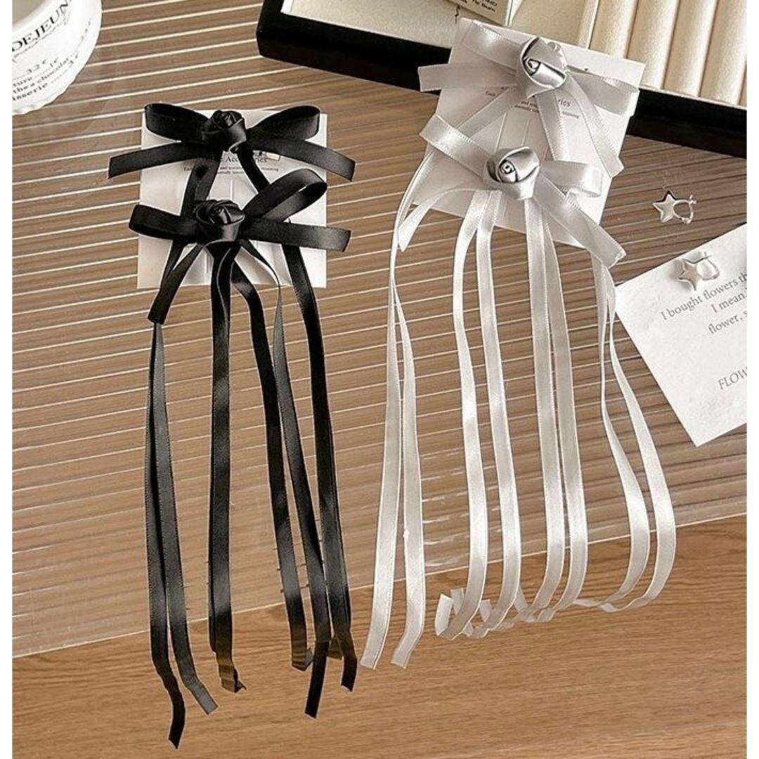 ☆★ 新品入荷 韓国デザイン♡大人気 ヘアクリップ ミニリボン付き ローズリボン 髪飾り 可愛い バレエ シルバー ブラック